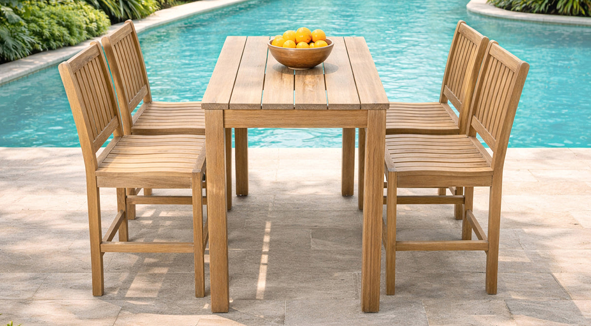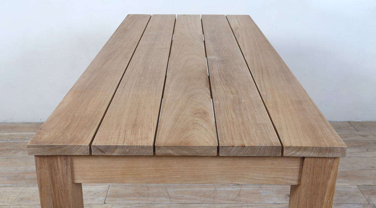 Teak is naturally resistant to weather and moisture, making this table perfect for patios, gardens, or poolside areas. Strong, durable, and timeless — ideal for outdoor dining and gatherings.