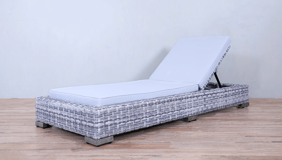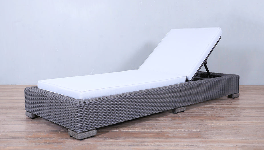 Rutherford Lounge Chair is made from Rope twist Antique tweed with white cushion with black piping. t is a great lounge Chair to relax in and will be kept on Patio, garden or near a swimming pool.